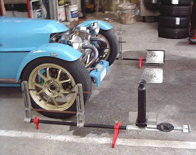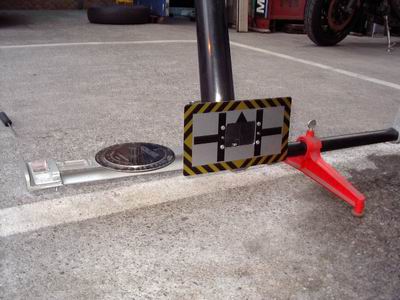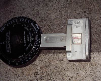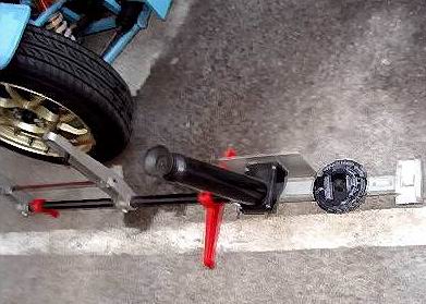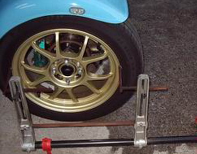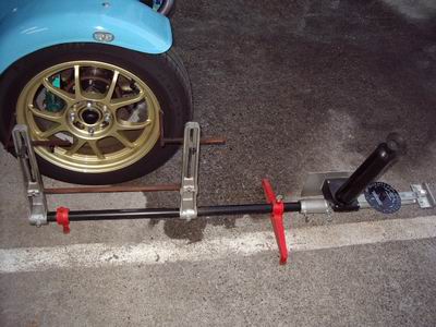 | DANLOP Optcal Alignment Gauge 結構原始的なテスターですが、思いの他完璧に計測(トー)でき、 調整しやすいゲージです。まず、ホイールにSETする前に0セッティング しておきます。 |