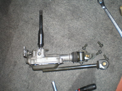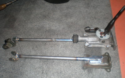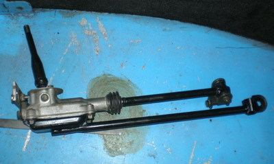 | シフトリンケージの延長(180mm)です。当初、繋ごうかとも思いましたが、逆に面倒なので、ノーマルを切削砥石でカットしてクロモリパイプ(15,9φ)にて作り変えです。 | 結構時間を食いましたが、完成です。さすがクロモリで軽くて”カシッ”としたかんじが伝わってきます。上のピストンロッド部(硬質メッキ)のみは流石にノーマルを使います。 |