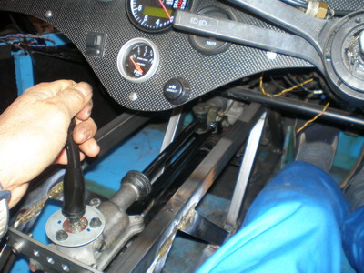 ペラシャのマウント完成。そして、シフトの位置決めです。ステアリングから手を下ろした時、自然にシフトが手の中に・・。w |