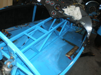 | 12/19 本日はフレームのペイント(ウレタン)です。下地(プラサフ)を塗りガンで吹こうかと思いましたが、ファクトリー内が大変な事になるのではけ塗りで誤魔化しました。ガンだと下側や見えにくい所は回せないので”はけ”が正解でしょう。マスクをしたのですが、結構クラクラしてます。(笑) 隠れてしまうので、調色もこんなもんです。(笑) |
