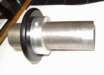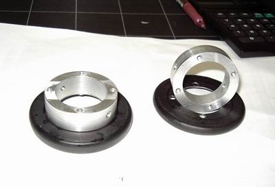 センターの穴を旋盤にてペラシャのサイズ35mmに開け直した物(左)です。これをペラシャの端(バックギアユニット側)2箇所に付ける訳ですが・・・・・効いてくれれば良いのですがねー。 |