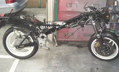 エンジンなしのフレームは情けない姿です。やはりBIKEはエンジンが肝であります。 |