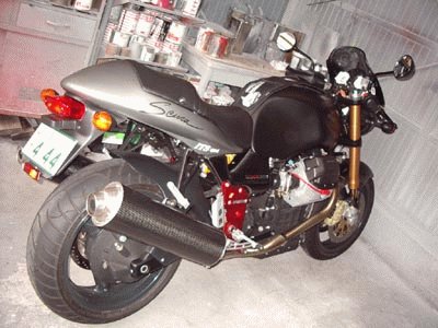 | 上のスクーラのエンジン他を使うつもりでいましたが、マウントやその他の問題が出てきた為早々に譲渡して今度はこのBIKEを手にいれました。勿論エンジン&ミッションをJZRに使用する為です。リア回りもこれを使用するかもしれません。相当パワー出ているらしいのでとても楽しみです。キヤブはFCRが付いていますが、変更するかも(つきがよすぎる?) 4バルブエンジンを搭載していた1000デイトナに、1100スポルト用の2バルブエンジンを積んだこのマシン。しかも、そのエンジンのチューニングメニューがスゴイです。レースにも使えそうなほどパワーアップしているとの事。 |