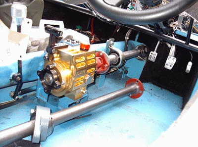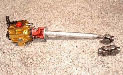 | 同軸で回転を正逆に切り替えられる優れもので、前後のフランジはフォード系です。レバーを倒したり引いたりで変則します。OILはATFを注入しました。と言うのも#90ぐらいでは重くて(回転)パワーロスになりそうな為です。しかし、現在は#90を入れてます。熱的に物凄く軟らかいOILは吹いてしまいます。それにしてもパワーロスが酷い! | ![]() |