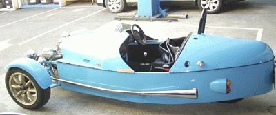 | 左から見た図ですが、決ってきましたね。エンジンは1100ccのチューニングエンジンが見つかり、当初のスクーラのエンジンの移植は見送りです。エキゾーストはチタン(60パイぐらいで、できればコニカルで!)で曲げてもらい、マフラーはヨシムラのトライオーバル(触媒タイプ)を左右につけようと考えています(車検時も排気はOK?)。このマフラーはとても画期的で触媒機能があるのに、ストレートになっているのです(覗くと何もなく反対側が見える=排気効率も良いし地球に優しい)。形も丁度車体に付けやすそうな形(断面が三角形)です。 | ![]() |
