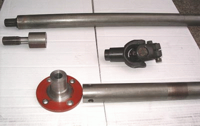 ダブルのユニバーサルを1つ取り払い(Wヨーク部分とスパイダー1つ)シングルタイプと改造しました。分解には細心の注意が必要で、ハンマーで叩きベアリングキャップを外すのですが、叩き過ぎるとキャップの穴が変形する恐れがあり結構難しいです。変形したら最後絶対にキャップが上がってきません。キャップが外れたら、横にずらしスパイダーを取りベアリング等を洗浄して組み直しますが、細いニードルが無くならないように注意します。後はオイルシール等を洗浄しグリスを充填してプレスにて組みます。 ダブルタイプは軸のズレ及び曲がりがあっても動力を伝えられる優れものですが、片側にベアリングを入れないとまともに回りません。(足元が狭い為ベアリングの置き場がない) シングルは角度(15°程)だけで芯は同一でなければ駄目ですが、振れは出ません。これをミッション側とリバースギア側に入れた訳です。 仮組みし回した所、まずまずきれいに回りほっとしました。 |