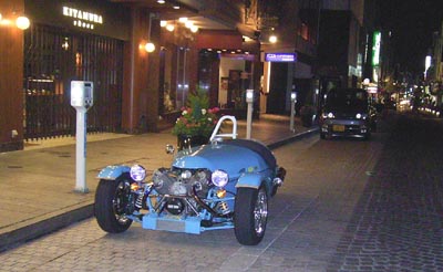 | MMの夜景(観覧車)等をバックにして一枚。 | MM赤レンガ前にて写真を撮りまくり!車が小さいので何処へでもするする入っていけます。昼間こんな所で撮影していたら大目玉をくらいます。 |