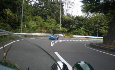 | 道志に迎えに来てくれた、wata号=「ヒース・フィールド」ホンダCXエンジン、作りは最高にキレイ!容もwataさん好みのクラッシク! | 道志道で車をチェンジ、自分の車の走りを始めて後ろから・・・。wata号はドラ・ポジも合わないし、タイヤも硬化してるし、M/Tも慣れてないしで少し怖かったが本音です。しかし、流石オーナーは慣れたもので難なく付いて来ました。 |