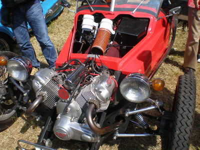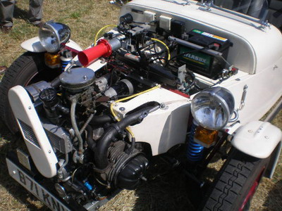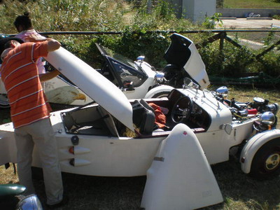 | エンジン&駆動系は2CVを使用、シャーシーはこの車専用に作られているようで、ショック取り付け等が同じエンジン使用のLomaxとは別。補記類の配置等も整然としてます。 | 後ろ、トランク!部の作りもそこそこ確りしてます。何故かクルーザーの雰囲気が漂ってますね。(笑) |