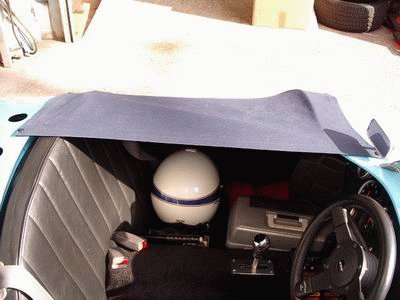 トノカバーを製作しました。元々合皮のカバーが付いていて、長期間置いておく時にかけるのには便利がですが半分だけかけて飛ばすと捲れ上がり危ない為、助手席のみのカバーを作りました。 |