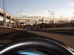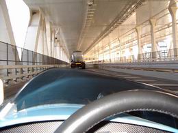 | Start 自宅より10分程の大黒大橋上り口 | 1.ベイブリッチを仰ぎ見ながら、大黒大橋を 下りていきます。時速120Km近辺! |