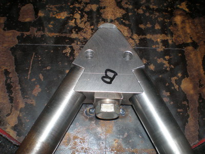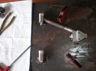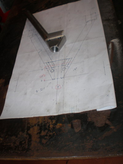 早速出来上がってきたアッパーの集合部です。パイプは22.2φのクロモリパイプです。 何時も面倒なパーツ製作は小学校からの友人(機械加工屋)に頼みます。ツーカーで説明も簡単、流石長い付き合いです。(笑)センターのメスネジは18mmX1.5=ボールジョイント。パイプ接合部の刳り貫き角度もバッチリです。8mmの二つの穴は軽量化?とジグ製作時に固定する為に開けてもらいました。問題は何溶接を使うか・・・ですね。