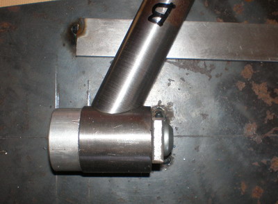 アーム車側の内径を友人の工場にて切削(ボーリング)してもらいました。流石プロ、仕上がりが凄い!26.97mm位か・・。 これも友人に作ってもらったBJが入るロアアーム先端部、BJが入る穴をリング溶接後、ボーリング。スプライン部が10mmあるので、それに合わせたわけですね。