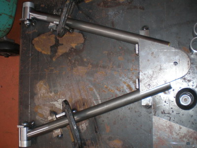 徐々に全貌(オーバー)を現してきたロアアーム。(笑) ほぼOKの状態まで来ました。後は溶接部を磨き脱脂して、Tig溶接です。