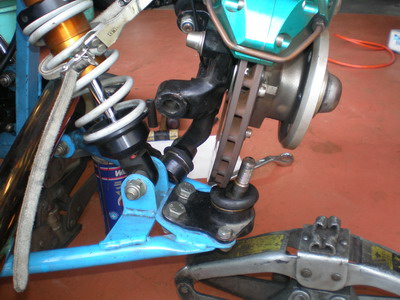 アッパーのボールジョイントのピッチ(1.5)と太さ(17.75=18mm)を採寸・・・イギリス物なので変な(インチ)サイズを使ってないか心配していましたが・・・良かった!アッパーBJはそのまま使用します。 ナックルアームを外し(特殊工具の出番=BM用の薄いやつ)ロアのBJのテーパーと太さを・・・用意したボールジョイントが合うか心配でしたが・・・。ロア/ボールジョイントは取り付け方がイマイチだし、この車に対して少しゴツ過ぎなので、変更しようと思っています。