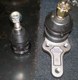 写真のボールジョイントはロアアーム用の候補=ビートル用の物。後はS130用、エラン、BENZ/Cクラスなんかも良さそう・・・どうなるやら、です。