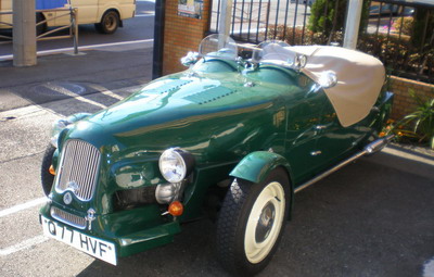外装の状態はそこそこ良いようです。・・・現車は未だ英国にあります。納期は1ヶ月ほど。 スクリーンはレーシングタイプでなく、ノーマル?タイプ(ワイパー付き) 幌付きで全天候タイプでしょうか。(笑)