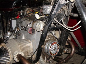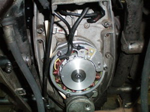 従来の電磁石ローターを使うタイプ。ル・マン1000以前は全てこれです。アイドリングでは満足に充電できませんし、ブラシより通電するタイプなので、その辺りのメンテも必要になってきます。発電量が少ない。BMW&GUZZI |