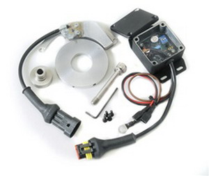 無接点タイプのデジタル・イグニッション・システムで、旧態依然のポイント等の点火系と違い、メンテフリーの優れものです。上記、充電システムと合わせて使用がベストです。 |