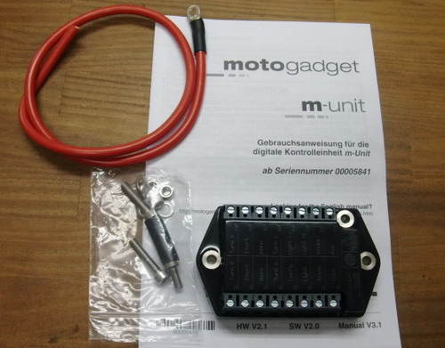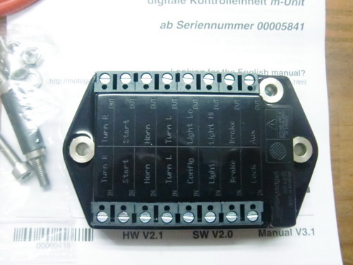 m-Unit 面倒な電装系、これ一つで全てOK! ウインカー、スターター、その他全てのリレーが組み込まれていて、配線するだけで完了します。 60mmx90mmx25mmの大きさで大変コンパクト、何処にでも置けます。 ¥39500.(税別) |