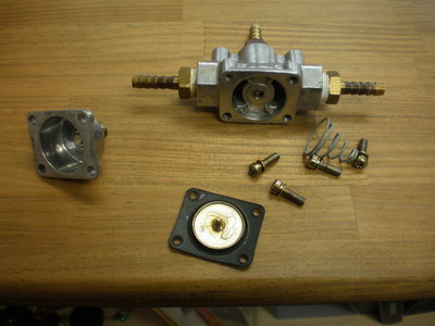 見た目何処にも異常の無い「ホリーフェールレギュレーター」¥5400.位ですが、いかれるのは殆どがゴム製のダイアフラム、これだけパーツ出ると思いきや、出ません! 全取替え・・・参りますねー。 一応、思いつく所を手直しして、組んで見ましょ。 |