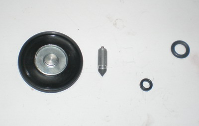 | オーバーフローが直らなく、キャブのメンテを実施。 | 今回、交換するパーツは加速ポンプ内のダイアフラムとOリング、それとついでにフロートバルブも新品に!これだけでも結構な出費です。 |