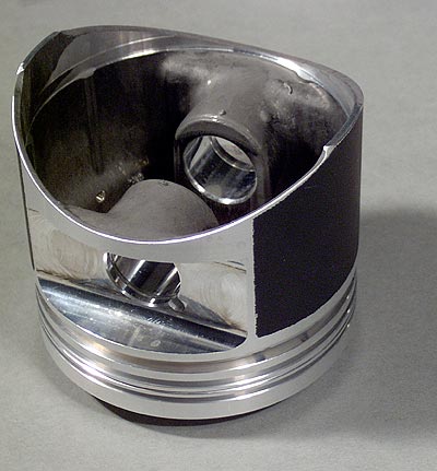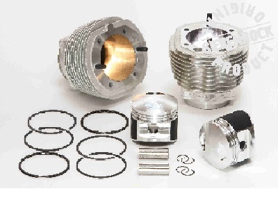 シリンダー壁はニカジルメッキ、ピストンはテフロンコーティング、勿論アルミ鍛造です。 注:写真は1000ccハイコンプKITでピストンヘッドの形状が若干、違います。 |