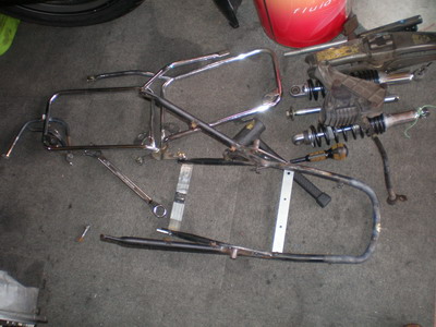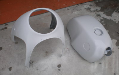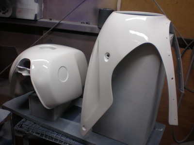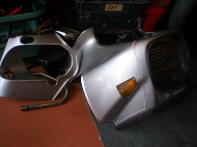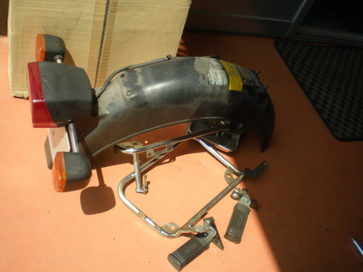 | ノーマルカウル=非常に重い!これだけでも相当軽快になる筈。 | リアフェンダーその他・・これも重いパーツです。トータル30Kgは軽くなるでしょ。 |