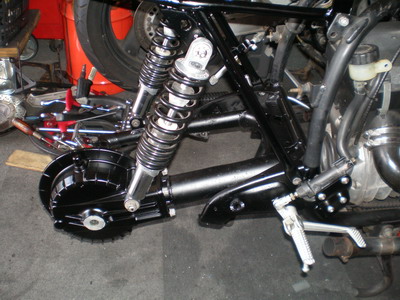 | マスターの取り付けが少し面倒・・・ステップ/ペダルの関係で前傾となります。まーいいでしょ。 ステップ位置は純正より10数センチバックの4センチUP位か・・・少し窮屈目・・・クラブマンですから。(笑)・・・と、言うとパニアは要らないと言う意見が・・・。(汗) こう見ると、キャブが・・・ビングも味があって良いんですが、やはりCRがカッコイイし性能も抜群!なので何れです。 |