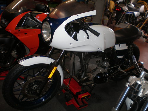 | 6月15日 ほぼ形になってきたR100RS改”CS”です。後はフォークO/H=スプリングをWPに、 ブレーキローター(GPZ)交換=変換アダプター製作済み、 キャリパーホルダー(スチール板/5〜6mm)製作位で完成にしておきましょう。 |