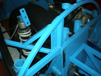 12/26 完成に向け細々した所に手を入れていきます。 始めから気になっていたサス取り付け部の補強です。取り付け部本体(湾曲した角パイプ)は如何という事はないのですが、ショックを取り付けている穴の開いた板が若干曲がっていました。(穴分弱いのか?) そこで板本体とフレーム側にも合わせて角パイプにて補強です。これでバッチリでしょ。 |