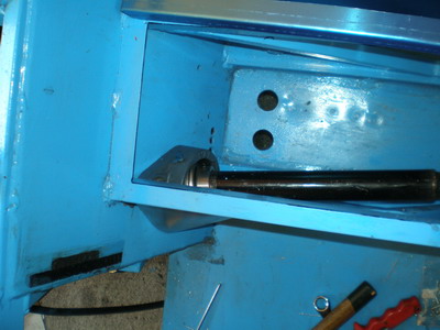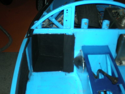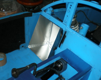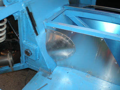 | 12/30 ベアリングの被いを製作・・・ペラシャがこんなに運転席側に寄るので、はみ出してきます。ノーマルはカーペットで誤魔化してありますが・・・。 床の穴は、前部より進入してくるエアーやら、ブローバイガス&エンジン/ミッションの熱やらの通り道(息抜き)です。 |