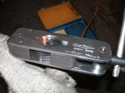 | 3.2mm程突き出し、円錐形の駒で広げていく訳ですね。 | ピンボケですが・・・完成です。注意点はフレアナットを入れてから加工ですね。 |