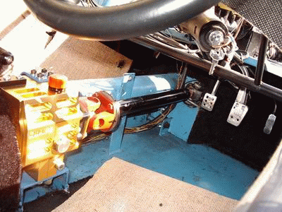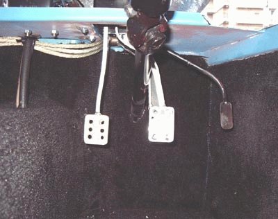 | 装着したところでとても具合がよくなりました。しかし、もともと足元の幅が狭くドライビングシューズは必需品です。アクセルは中間を切断し少し(15mm)詰めてあり左、ブレーキ側に寄せました。寄せる前は右足の小指で踏み込む感じで違和感があり(クラッチも同じ=左足小指)強度(アクセルは)も必要ない為加工のみで済ませました。クラッチの左上のケーブル(3本)はアースイングでエンジンが元気になりました、効きますね(笑)。 | ![]() |