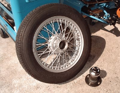 ワイヤーホイールとセンターロックのパーツで、トータル16,4Kg(片輪)と相当の重さで、これに上の極重キャリパーやスチールのフェンダー&ステーが付くのですからどたばた感はしょうがありません。私は形より性能重視で、ホイールも国産軽量アルミに交換する方向です。フェンダーはケーターハムのファイバー物を加工取り付けし、ステーはスチールのごつい物から、クロモリパイプで作り直し、トータル片輪バネ下マイナス10Kg以上をめざしましょう。 |