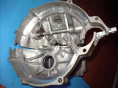 | 溶接したベルハウジングをカット! 2ツに分けます・ | セル取り付け部の補強もしておきます。 |
