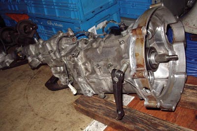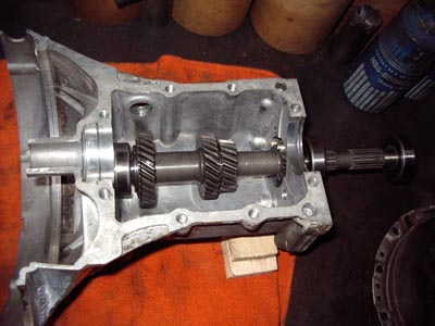完成です!一気に組み上げて肝心の写真撮り忘れました。出来てしまえば何てこと無いのですが・・・此処までは結構大変な作業です。シフトも全て(5速までとバック)きれいに入り安心! 後はフライホイールにリングギアを付ける作業とフライホイールの取り付け面の製作になります。カプチーノ/フライホイールの取り付け面をGuzziエンジンに合わす訳ですが、高さ=ディスクの当たり面の寸法を出すのが少し面倒です。センターにパイロットベアリングを入れる穴も作らなければなりません。 |