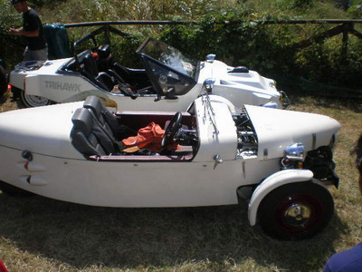 手前は”狭山湖のハル”さんのトライホークで、これもシトロエンエンジン/4発です。何時も仲良しのご夫婦で参加・・ご理解があり、羨まし!!奥さんは車狂?でドライバー席もよく暖めているようです。ハルさんは旧い自転車等の細かなパーツの造詣に何時も”目を見張っている”・・やはり好き者です。(笑)