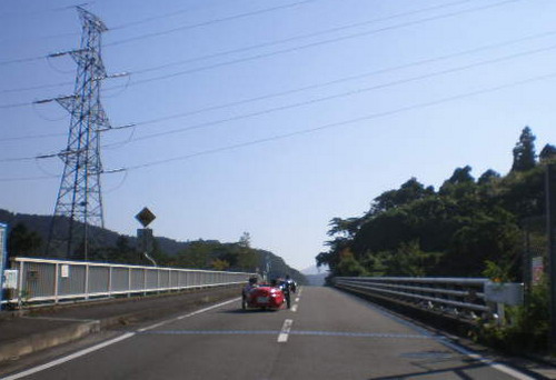 この台数ですから、普通の人が見たら「何かのパレード?」ですね。 爽やかな空気の中、中津川渓谷を横目に見ながら8台の”変な車”達が縦列を組んで行進です。