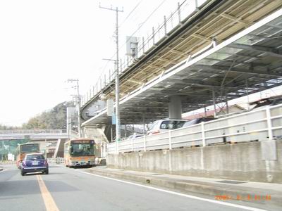 | 新道料金所ですね。料金所のオヤジさんが何時もナンバーを見に出てきます。ちっこいから軽でいいんだけどね!硬い事言わないで・・・・・。この後松並木に行かず戸塚警察を左折し、田谷の洞窟前を通り大船方面に向かいます。 | 大船モノレール(西大船駅?)下を通過し、七里ガ浜に向かいます。この道は波乗り全盛時に何回通ったか分りませんね。 |