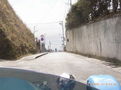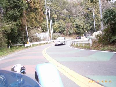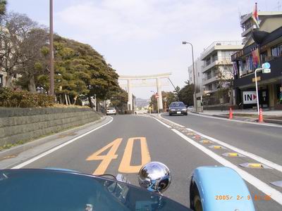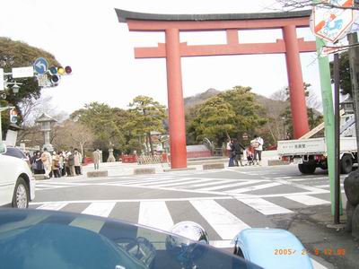 | これが3番目の鳥居(八幡宮)です。前回1/19の時と反対の道筋になりました。突き当たって右折し、鎌倉霊園に向かいます。 | 霊園を取り巻く格好のワイディングですが、ここもJZRには面白い道です。しかし車が多いねー・・昔は走りやすかったんだけど・・・。路面もローリング族よけとかで変なことするし。 |