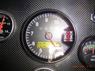 | ベイブリッチ上で相変わらず横風が強いですね。でも中央車線全開! | 5速4500回転/122Kmまでは写真を撮れましたがそれ以上は危なくて片手ハンドルはNGですね。 |