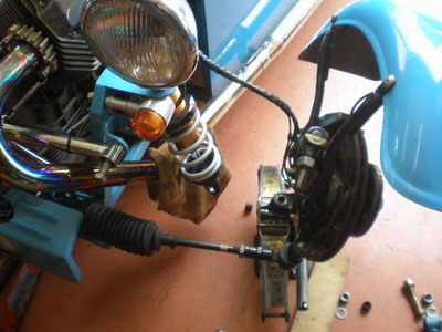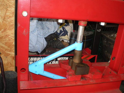 | 8月8日 いよいよ交換作業に入りました。ノーマルをバラシ、ブッシュを抜きます。 |