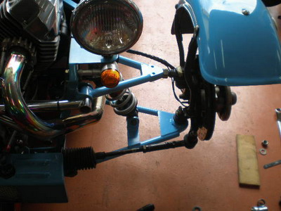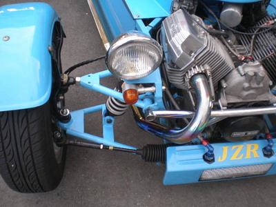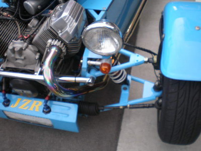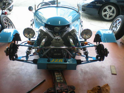 | 見た目(スタイリング)には激変していませんが、一応完成(09y8/8)しました。乗った感じは”当たり前”ですが、左右への安定感が抜群!! 乗り心地の改善も目を見張るばかりです。アームが片側60mmも長くなったので当然でしょうが、突き上げ感が減少し、オーバーに表現すると、「路面を舐めるようにを捉える」なんてフレーズがピッタリ! 又、動きにクイックなところが減りましたが、高速でも安定がすこぶる良い方向に・・一回り大きな車になった感じですね。 |