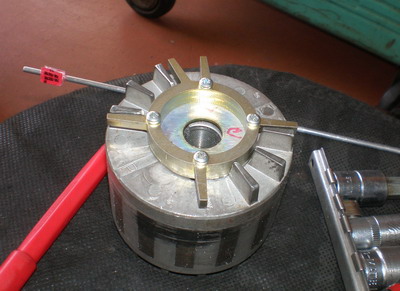 早速、オルタをバラシます。と言うのもローターデザインが変わり、そのままでは付きません。ローターのフィンが邪魔をしてしまうので、旋盤にて削りとります。リューターでもOK。 Guzziエンジンは整備性いいなー! |