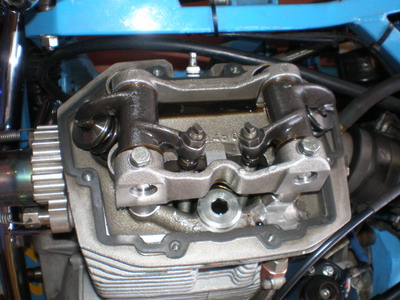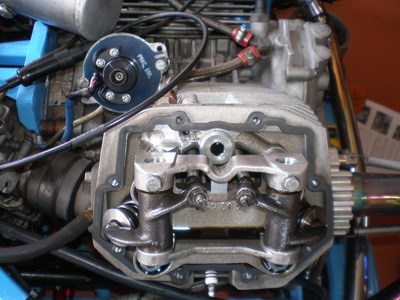 上支点位置確認の為、ヘッドカバーを開け、ついでにバルブクリアランスを計測・・・狂ってましたねー。「結構、音出てたからなー」 IN=0.2mm、EX=0.25mm、(メーカー推薦値だと突き上げる) 見ての通り、リテーナーはチタン製です(自己満)。OHVは良いですねー・・色々な面で! |